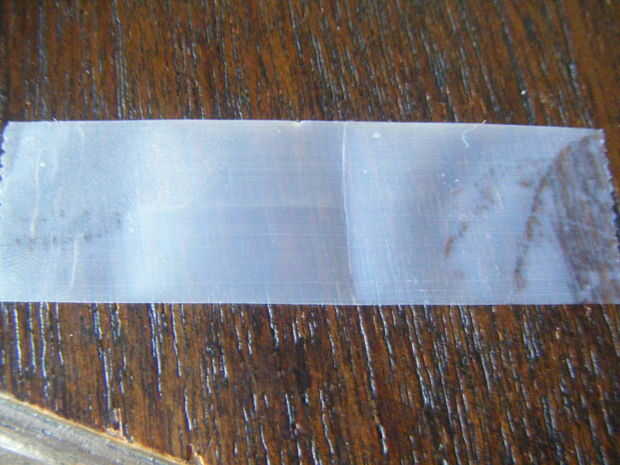 Tomar un trozo de cinta y poner sobre la mesa (debe ser una superficie plana y oscura). Sujete ambos extremos, pero no el medio. Cuadro dos muestra un buen ejemplo.