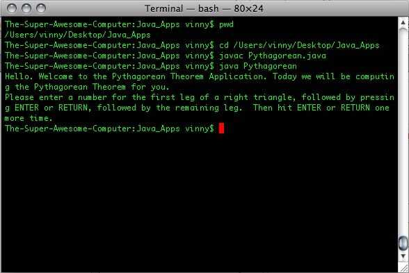 el ordenador dice estoy en /Users/vinny/Desktop/Java_Apps que es donde mi archivo está guardado ya, sin embargo, cambiar el directorio para mostrarle cómo hacerlo usted mismo