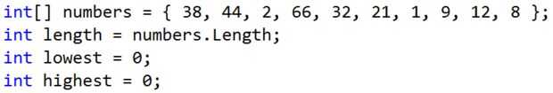 int lowest = 0; int highest = 0;