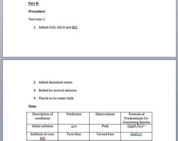 Necesita repetir los procedimientos, datos y observaciones para todas las demás partes del laboratorio también.