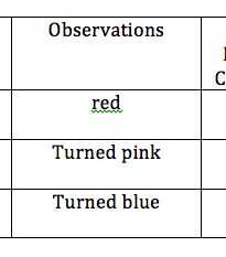 La última parte del cuerpo es las observaciones. Las observaciones incluir todos los cambios físicos, notables que ocurren durante todo el experimento. Observaciones iniciales y finales también son necesarias para algunos laboratorios. Observaciones podrían incluirse en los datos si se presenta en forma de tabla como en este ejemplo.