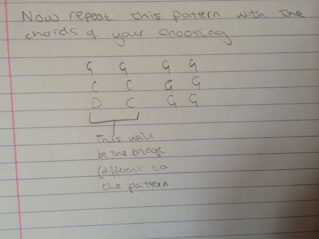 Cómo escribir un simple acorde y ostinato basan de melodía y acompañamiento (5 / 10 paso)