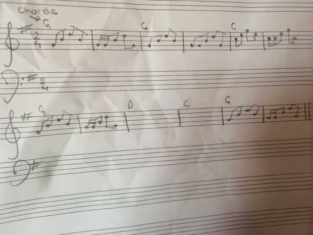 escritura ahora hacia fuera toda la melodía que tiene (menos el puente que estamos todavía a escribir)