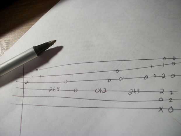 Números en las líneas correspondiente decirle dónde poner los dedos. Un número 2 le puso su dedo sobre el segundo traste. Un traste 10-décimo. Usted consigue la idea.