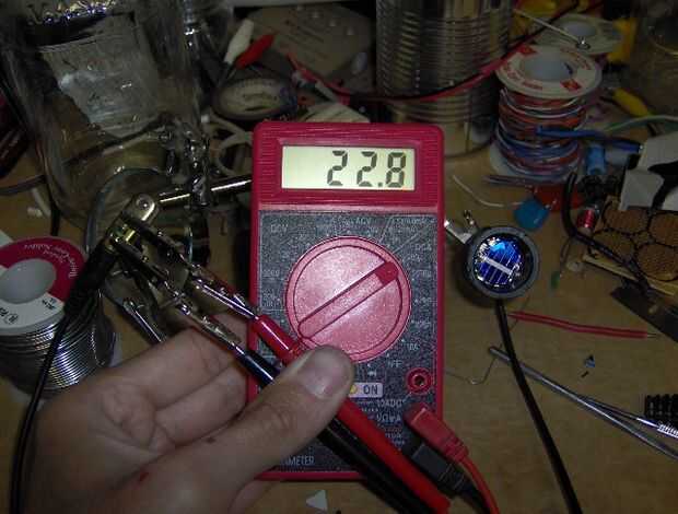 Parece que la luz de los accesorios arriba está causando la célula solar producir cerca de 20 microamperios de corriente.