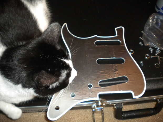 Me parece fácil de pegar la hoja sobre el pickgaurd entero y el corte con una navaja de afeitar.