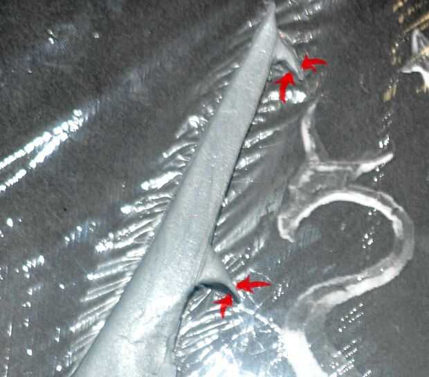 Utilice una herramienta de la bola alrededor del borde para acentuar el pliegue y corte arcilla sobrante con un cuchillo de la manía. Repita este paso para esculpir las diferentes partes de las alas.