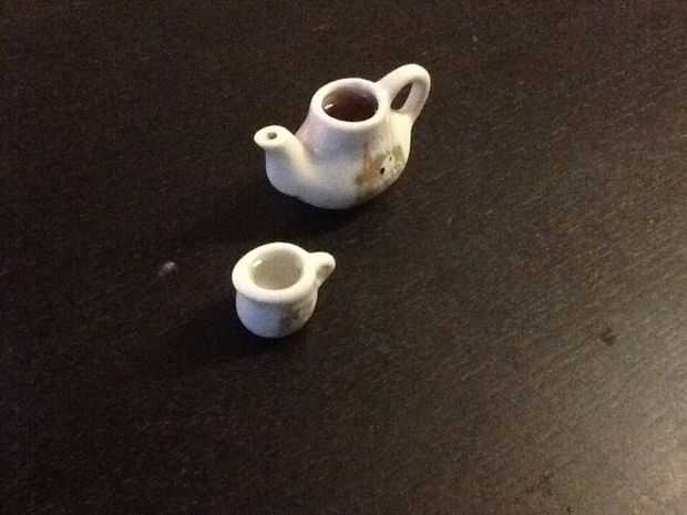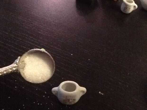 Que usted consiga en el bote de té y vierta el té. Usé té Lipton Earl Grey. Poner el azúcar en la pieza del juego de té de azúcar. Para que se vea mejor, poner la cuchara pequeña.