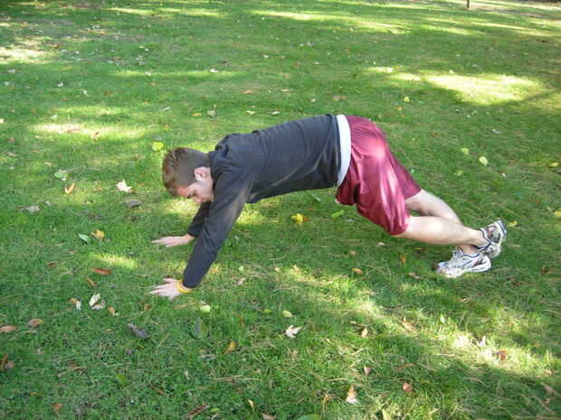 Esta próxima técnica es similar a una lagartija. Este tramo se realiza cuando no hay nada para apoyar contra. A en posición de lagartija y luego simplemente descansar una pierna sobre la otra. Sostenga y cambie las piernas.