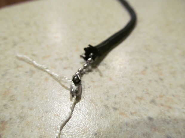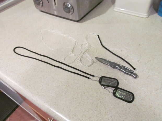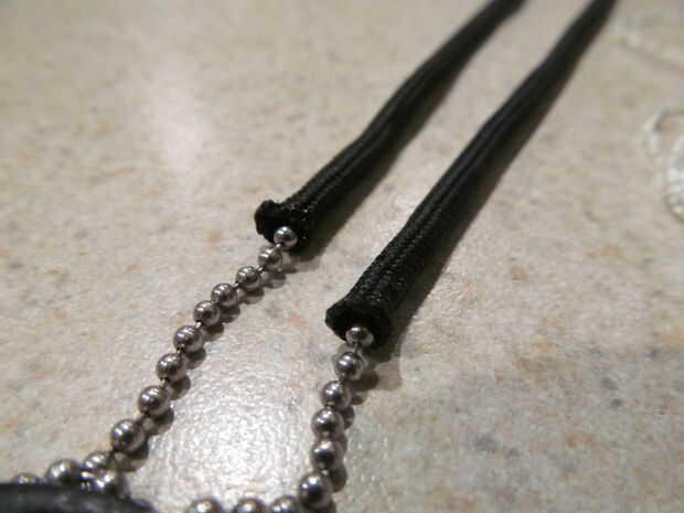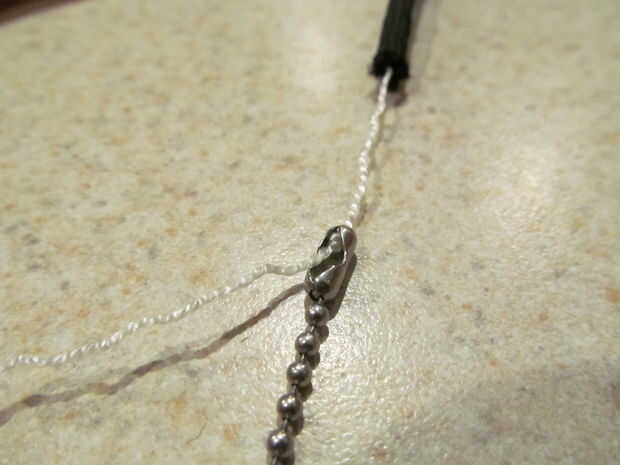 1. medir una pieza de paracord tan larga como la cadena de la bola.