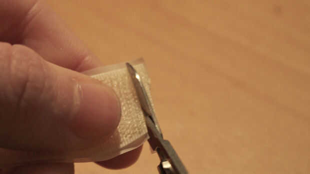Ahora querrá hacer primero, es asegurarse de que el extremo del velcro es recto. Aunque puede parecer, es mejor estar seguro. Para ello, cortar un pequeño trozo de ella