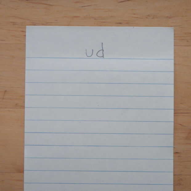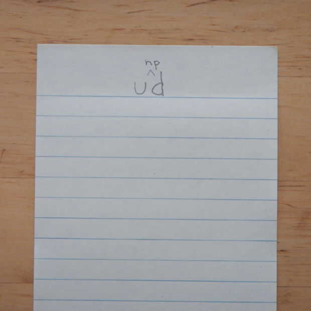 En la primera línea de su página vacía, escriba ya sea ud o np. Es su opción. (Siempre usaremos letras minúsculas porque la forma de las letras se volverán importante.)
