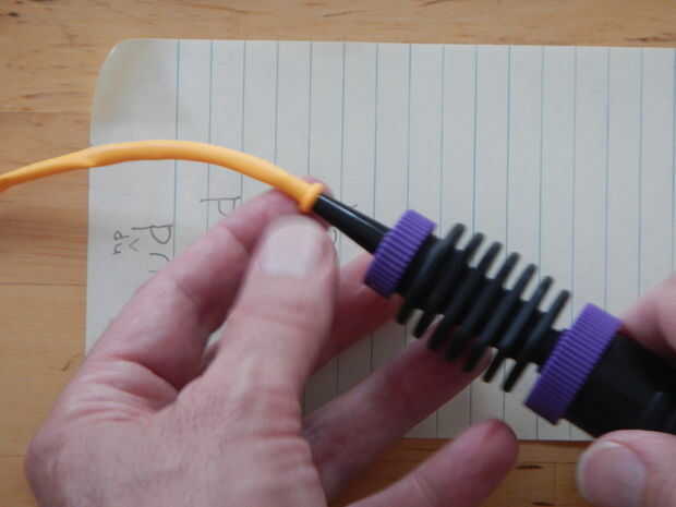 Apriete la boquilla del globo para evitar la deflación; Retire de la bomba; estirarlo; atar en un nudo; y tire firmemente.