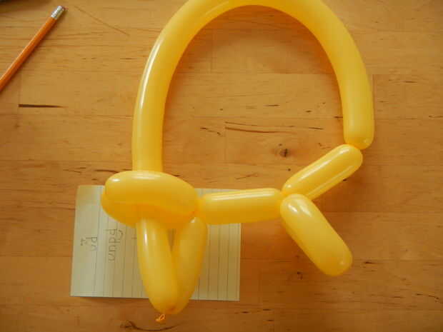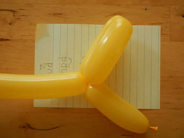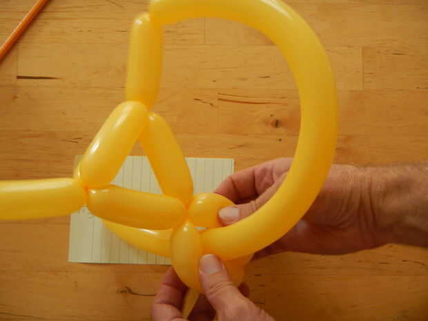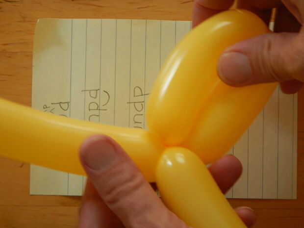 Sujetador en un lugar de 3 pulgadas desde el nudo de su globo, y luego gire el globo sobre una vuelta completa. (Es natural temer el globo pop mientras gira, pero esto es bastante raro).
