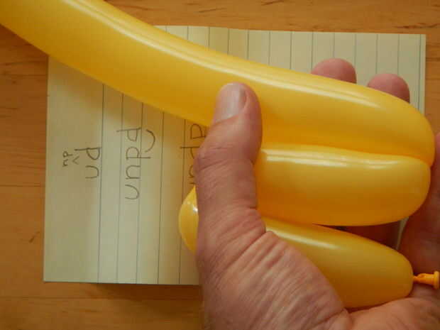 "Torcer" un globo, realmente significa, "pellizcar — luego de la torcedura." El pinch localiza exactamente donde el balón se torcerá. Vamos a torcer globos en segmentos consistente de tres pulgadas (8 cm) que llamaremos enlaces. Descubrir alguna parte de su mano es de tres pulgadas de ancho y devolver a él con frecuencia como una referencia al hacer tus enlaces. Girando constantemente enlaces de tres pulgadas permite torcer el fenotipo de una palabra de 6 Letras de un solo globo #160.