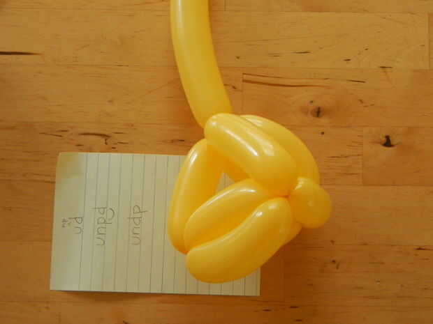 Tratar de soltar el balón ahora y podrás descubrir un problema. Hasta que la torsión alcanza un determinado Estado (coincidiendo con la finalización de una carta) se es propenso a desenroscar si no continuamente a cabo. Para comprender los enlaces múltiples es conveniente plegado los en su mano como se completan. Si hay demasiado balón de mano sujetar, usar el pecho para ayudar a. (Cada vez que completas una carta, puede dejar ir.)