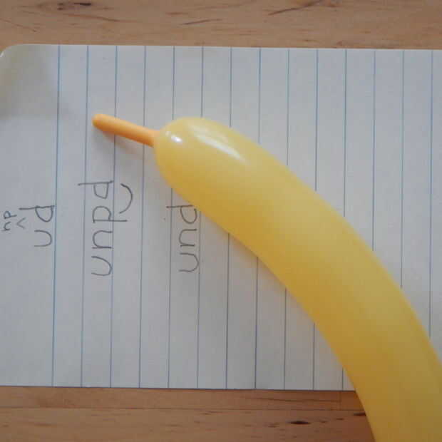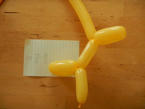 Entre las letras, tomar tiempo para organizar su globo para que el tiro de "izquierdo" y "derecho" de cada carta está correctamente orientado. Usted encontrará que los enlaces doblados algo complaciente hacia el lado correcto cuando empuja.