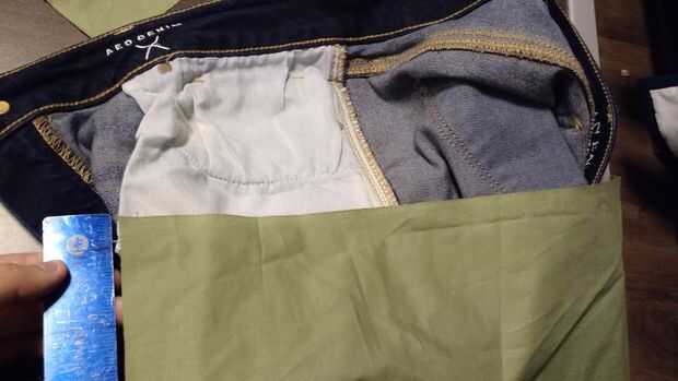 Vuelva los pantalones y encontrar la bolsa que desea extender. Sólo puede hacerlo al típico bolsillo frontal (donde una de las esquinas es «libre», i. e. no adjunta a una costura de los pantalones vaqueros).