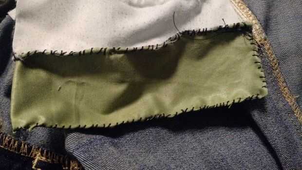 Hay un pequeño canto donde la costura que se puede sentir a través de los pantalones vaqueros, pero no debería ser evidente si usted hace su ciclo lo suficientemente pequeñas puntadas.