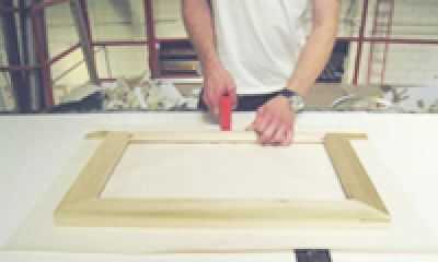 6. pasar a los lados más cortos del marco, tramo el exceso 3'' de lona overtop de los lados más cortos.
