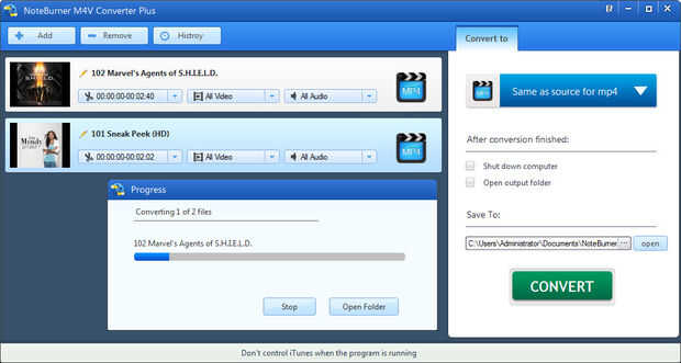 Botón haga clic en convertir para iniciar la conversión M4V Audio formatos, como MP3, AAC, WMA. Entonces usted puede extraer la pista de audio para cualquier reproductor mp3.