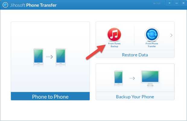 Haga clic en "desde iTunes copia de seguridad" desde el sector de arriba-derecha.