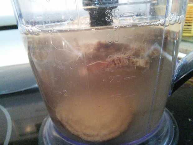 5 poner rodajas en la batidora. Añadir un montón de agua. Mezcla hasta Aguada.