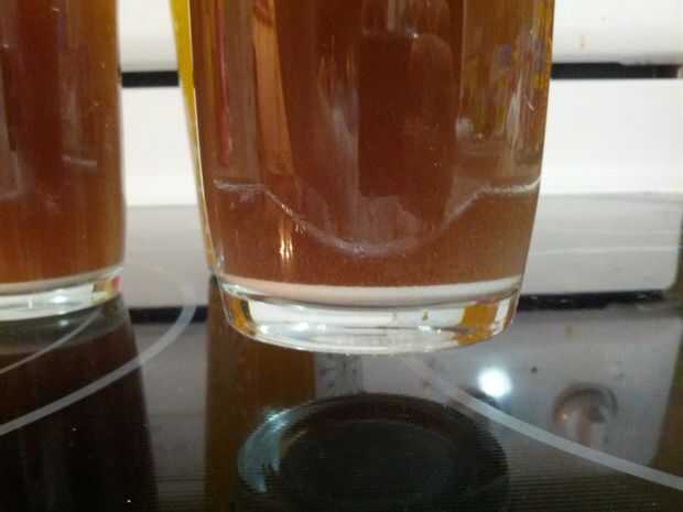 Después de un tiempo, usted debe ver una capa blanca en el fondo del vaso. Esto es un almidón. Esperar algo más.