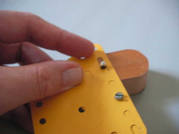 El Motor irá dentro de la madera, el Meccano celebrará el volante, y cuando el Motor cae, dice allí, dentro del bloque de madera.