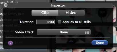 Usted debe abrir una nueva ventana de comando. En el campo "Duración" pone a 1:00 y luego marca la casilla "Se aplica a todos los fotogramas".