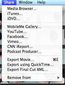 Ahora, en el menú superior haga clic en "Compartir" y luego "exportar con Quicktime..."