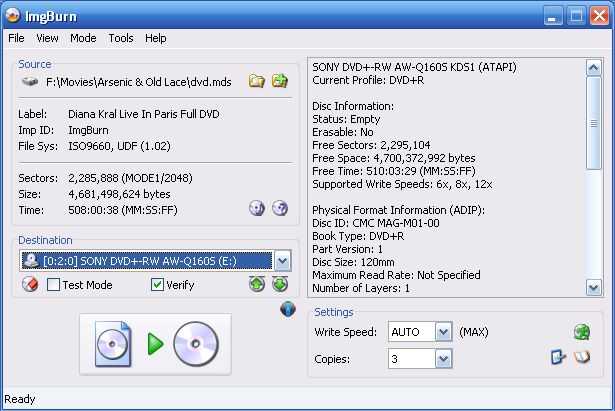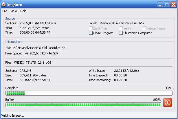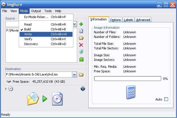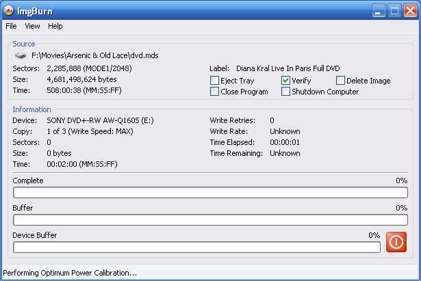 Open up ImgBurn . Desde allí, haga clic en modo de menú desplegable. Luego construir. Haga clic en el botón de la carpeta de examinar (la una con la carpeta y una lupa) y ahora vaya a la carpeta que contiene la carpeta VIDEO_TS y AUDIO_TS carpetas y abrirlo. Pulse ahora el botón de la calculadora y calculará el tamaño de los dvd, esta determinará si necesita una doble capa de dvd o uno estándar. Ahora, haga clic en la carpeta al icono de disco y creará un archivo que puede grabar en un disco. Nota: No es quemar el disco, simplemente crear un archivo que quemará más adelante. Este proceso llevará algunos tiempo así que sea paciente, puede tomar hasta una hora o dependiendo del disco. Después de que ha completado este proceso interruptor para el modo construir. Haga clic en la opción de carpeta y seleccione el archivo ".i00" de la carpeta. Debe ser un par de Gigabytes. Haga clic en el disco en la pieza de icono de papel para botón de icono de disco y déjelo trabajar su magia. Hará la primera quema muy rápidamente (aproximadamente 10 minutos) luego saltará el DVD (para comprobarlo) y finalice el disco (también esto le llevará unos 10 minutos).