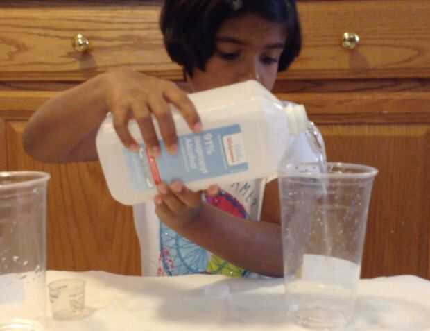1. Vierta el alchol isopropílico de 100 ml en un vaso plástico transparente independiente