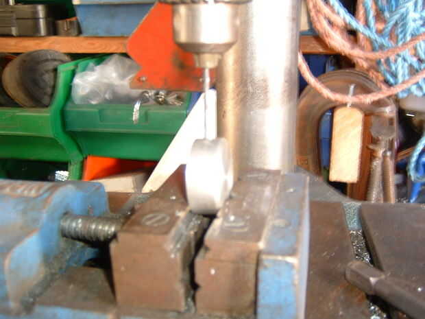 3A. ahora perfore un agujero piloto en el centro de la broca biselado hacia fuera. hacerlo midiendo desde el borde biselado en mitad de la cantidad te biselada pulg (me mide 4mm como biselado 8mm)