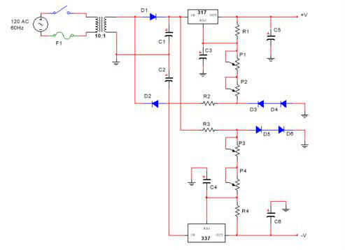 Para construir la fuente de alimentación, como se muestra en el circuito, tendrá las siguientes partes: