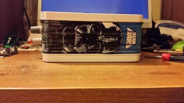 Voy a decir que la planificación es muy importante. La caja de almuerzo de la lata estaba muy delicada. Usé cinta de enmascarar para proteger la pintura cuando la perforación y corte de la lata.