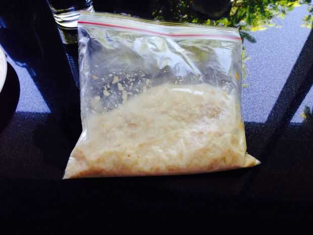 Usa tu mano para aplastar las galletas mojadas juntos. Mezclar hasta que se parecen a la imagen.