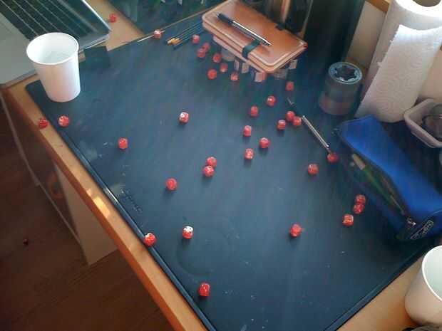 Después de lanzar los dados, he encontrado dos de ellos desde el piso y 34 a la mesa. También se propagan a un área bastante amplio, y como un wargamer, sé que esta va a ser bastante molesta si hay mucho terreno.