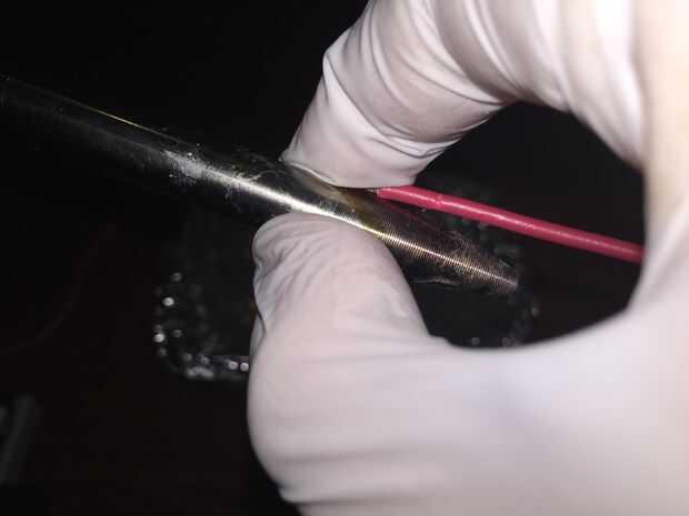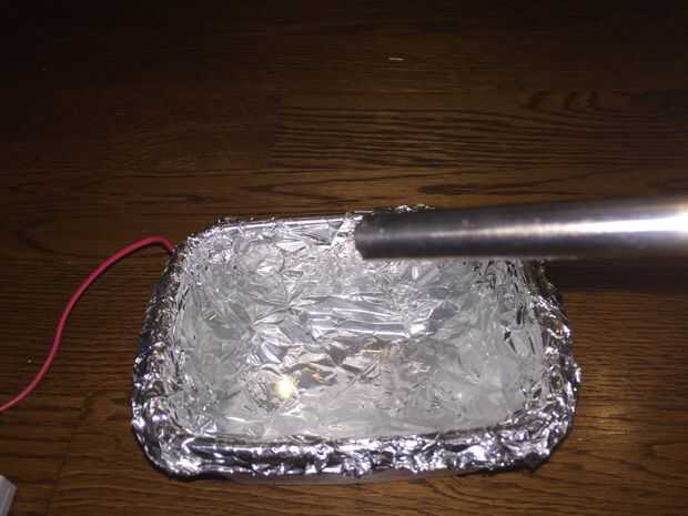 Tomar el titanio y el cable positivo y tocar juntos. Sumerja la pieza de titanio. Asegúrese de que el cable no es sumergido y sólo titanio toca la solución. También, tenga cuidado y asegúrese de que el titanio no toque la lámina en cualquier momento. Puede corta todo y generar enormes y peligrosas chispas. Una vez alcanzado el color deseado, sacar el titanio y séquela. Encontrarás que algunos colores se ven afectadas por las huellas digitales y pueden llegar a ser aburridos cuando se exponen a las huellas dactilares. Esto es perfectamente normal y el color original puede ser restaurado usando acetona o alcohol para quitar los aceites