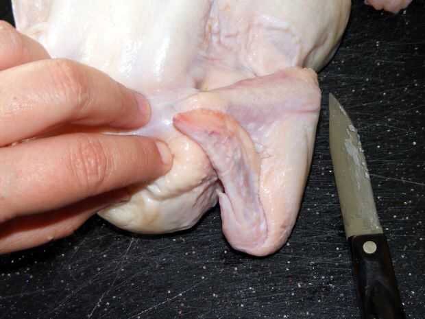 Cortar la punta es la parte más difícil. Esto es donde los tijera pollo va a venir bien. Los huesos son lo suficientemente suaves como cortar a derecha a través de la articulación. Otra vez, sentir la articulación e intentar cortar allí.