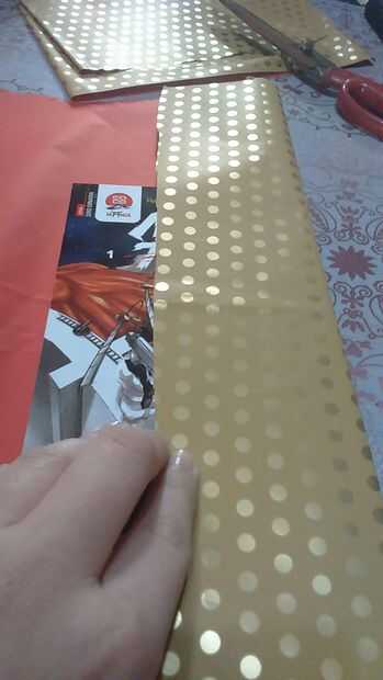 hoy voy a decirte cómo envolver sus regalos bien sin ripeo algo o el otro así que vamos aPaso 1: Qué necesitamos -Papel de embalaje-Tu regalo-Cinta-TijerasPaso 2: a partir de Tan primero medir su papel de embalaje. En el papel Mida su regalo mío es c