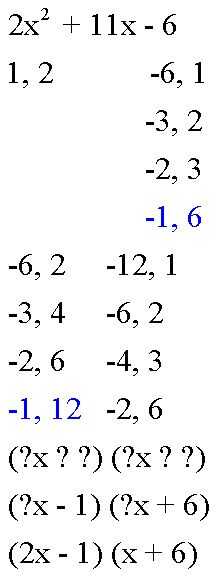 Aquí es otra: 2 x^ 2 + 11 x - 6.