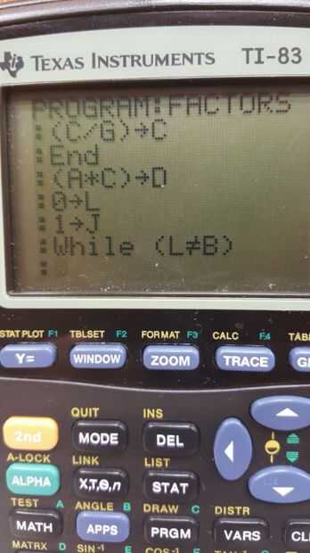 Seleccione PRGM y el declaración. Comienza un paréntesis seguido de la variable L hace no equal(≠) variable B, extremo con un paréntesis. Pulse ENTER. ex - mientras (L x = B)