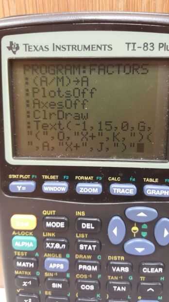 Este paso es para la visualización de la fórmula. Seleccione PRGM 2 y texto seguido de un paréntesis con los números-1,15,0,G,"(,O,"X+",K,")(",A,"X+",K,")(",A,"X+",J,") "(que puede saltar a una nueva línea para cada paréntesis para hacerla más limpia)