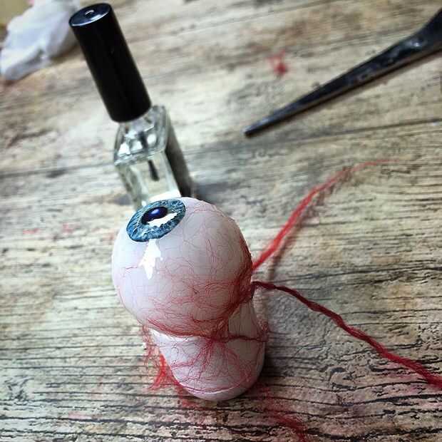 Aprenda cómo crear un ojo super cool con métodos muy sencillos. Hilo, plástico arcilla o polimorfo, un iris impreso y algunos esmalte de uñas transparente.