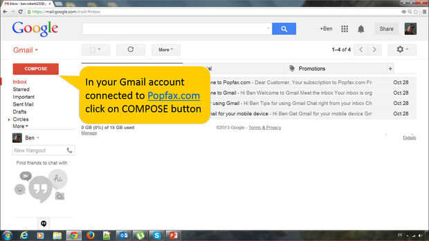 Paso 1: En tu cuenta de Gmail conectado a Popfax.com crear un nuevo mensaje.