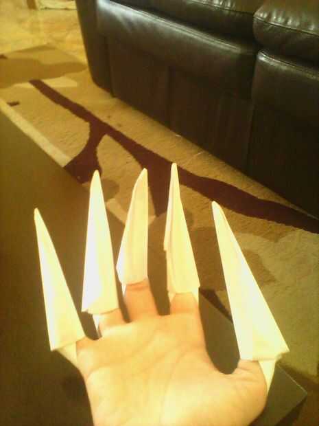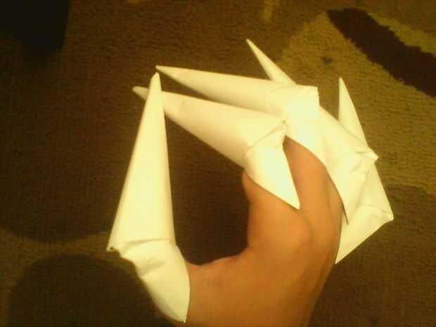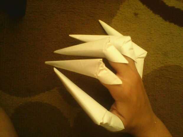 garras de papel tienen muchos (* tos * dos * tos tos *) utiliza: asustar a la gente y simplemente sentarse allí buscando fresco.Paso 1: doblar doble papel a los bordesPaso 2: más plegable hacer tocan las esquinasPaso 3: incluso más plegable primer ha