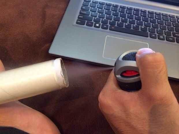 Passe desodorante dentro rolo, mas não muito, ter de párr possa un reação com un faísca hacer acendedor.