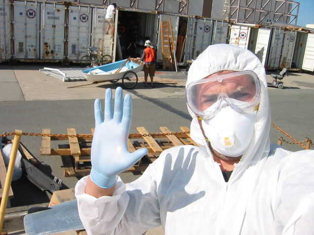 Trabajar con fibra de vidrio es realmente uno de los procesos más peligrosos que hay. Las pequeñas fibras de la estera pueden causar irritaciones de la piel y tienden a ser por todo el lugar. Los vapores de la resina y los limpiadores que se utilizan pueden causar daños a largo plazo y están llenos de todo tipo de desagradable VOC (cosas que arruinara el cerebro y la máquina de bebé). Y luego está la gran cantidad de polvo muy fino que se crea al lijar. No es que trabajo con este material es mortal, es simplemente que debe ser tratado en la propia forma y utilizando las precauciones apropiadas. Cuando se trabaja con fibra de vidrio debe usar: