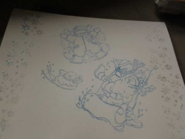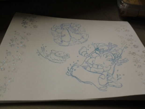Use un pegamento sello con el sello. que el sello en el papel y que agregar brillo. lo calor mini enchufe y enciéndalo. utilizar hasta pegado bien.